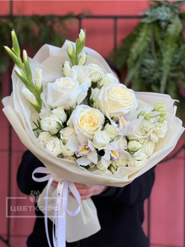 Сборный букет с пионовидной розой «Пломбир»