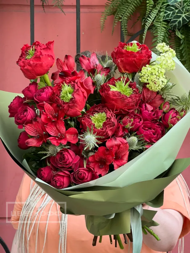 Авторский букет с розой «Ред ай»
