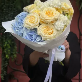 Сборный букет с гортензией «Голубое небо»