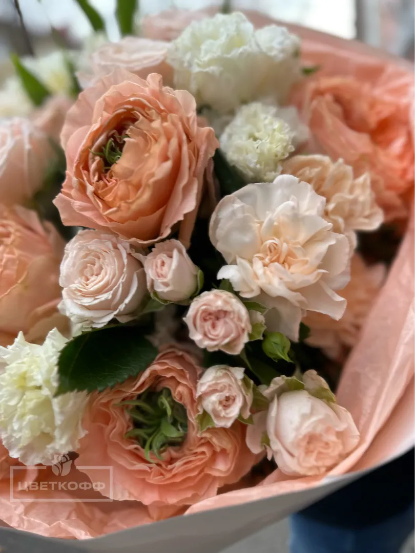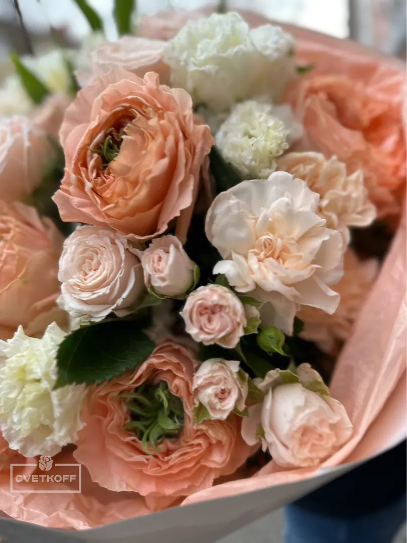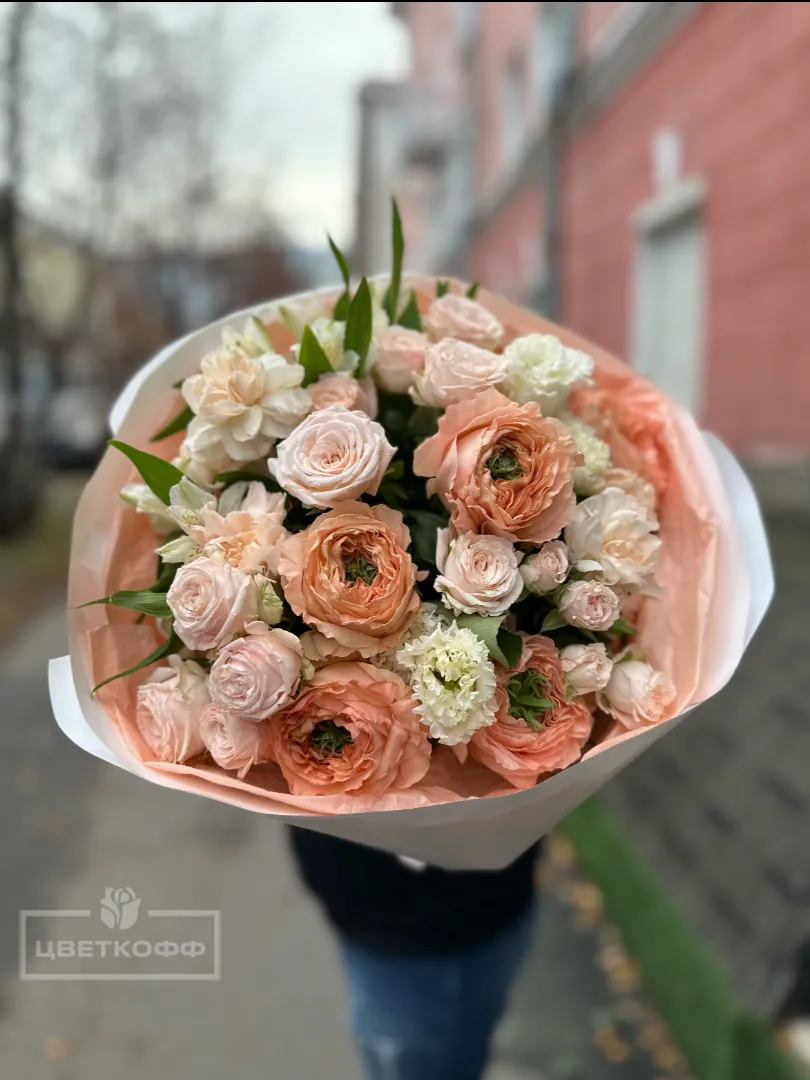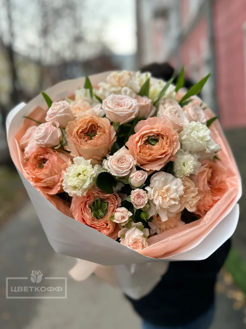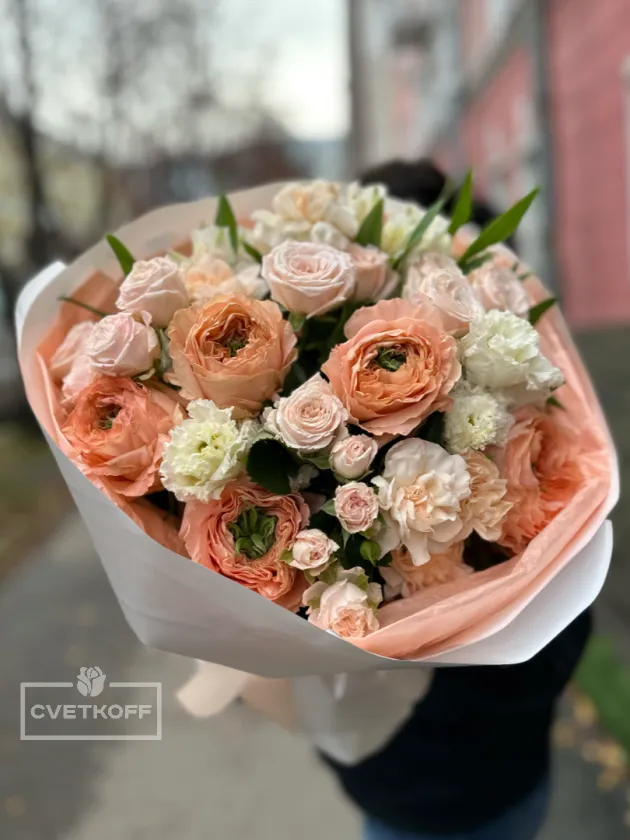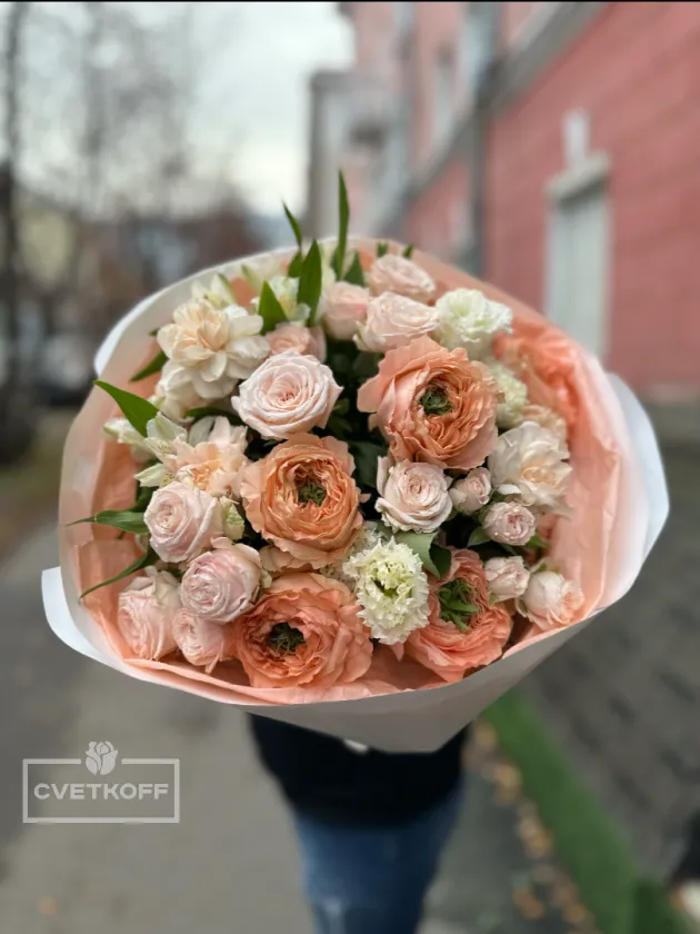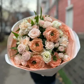 Букет «Персиковый сад» — это нежное сочетание мягких пастельных оттенков и свежести. В его составе гармонично сочетаются цветы теплых оттенков, создавая ощущение уюта и романтики. Этот букет превосходно подчеркнет особый момент и добавит тепла в любой интерьер.