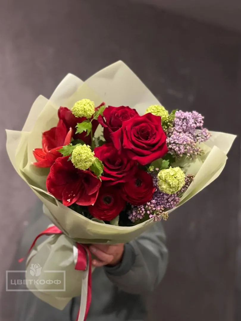 Сборный букет с амариллисом и сиренью