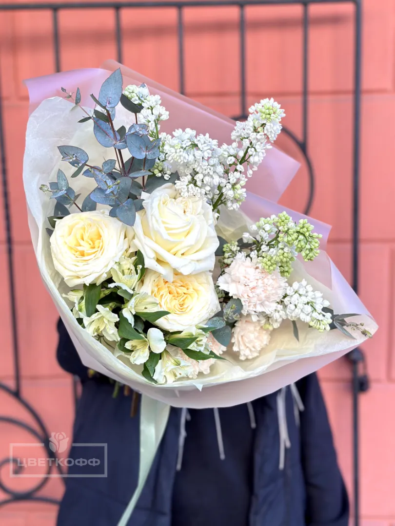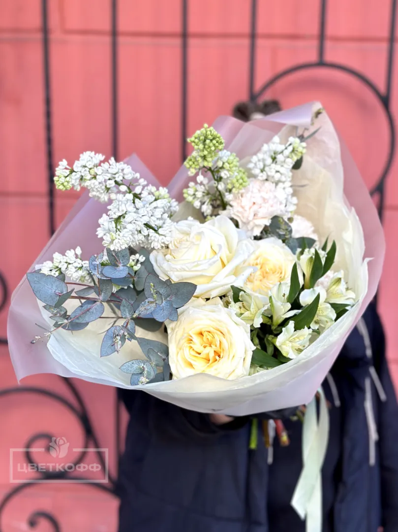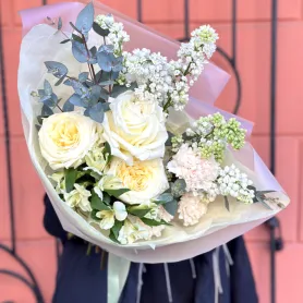 Авторский букет с пионовидными розами «Аромат весны»