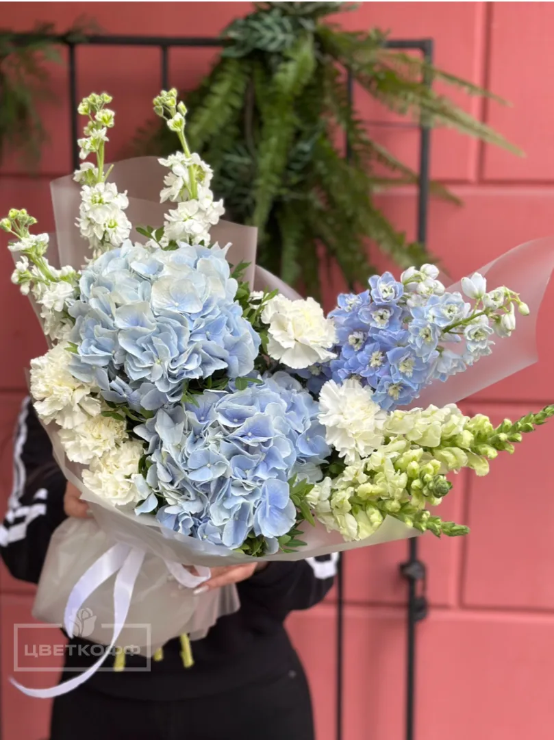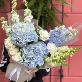 Авторский букет с гортензией «Летнее небо»