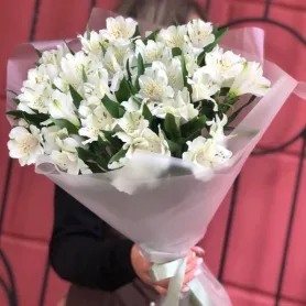 Букет из белых альстромерий – это воплощение нежности и чистоты. Каждый цветок, словно изящное творение природы, раскрывает свою утонченную красоту. Белоснежные лепестки альстромерии излучают спокойствие и элегантность, создавая атмосферу умиротворения. Этот букет станет идеальным подарком для выражения искренних чувств и пожеланий. Он привнесет свет и свежесть в любое пространство, будь то дом или офис. Альстромерия, будучи стойким цветком, будет долго радовать своей первозданной красотой. Деликатное оформление упаковки подчеркивает утонченный стиль букета. Этот композиционный шедевр способен растопить даже самое холодное сердце. Подарите себе или близким частичку белой магии, заключенной в этом замечательном букете.