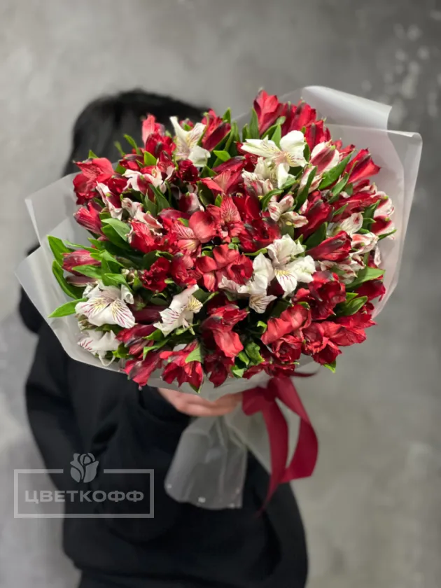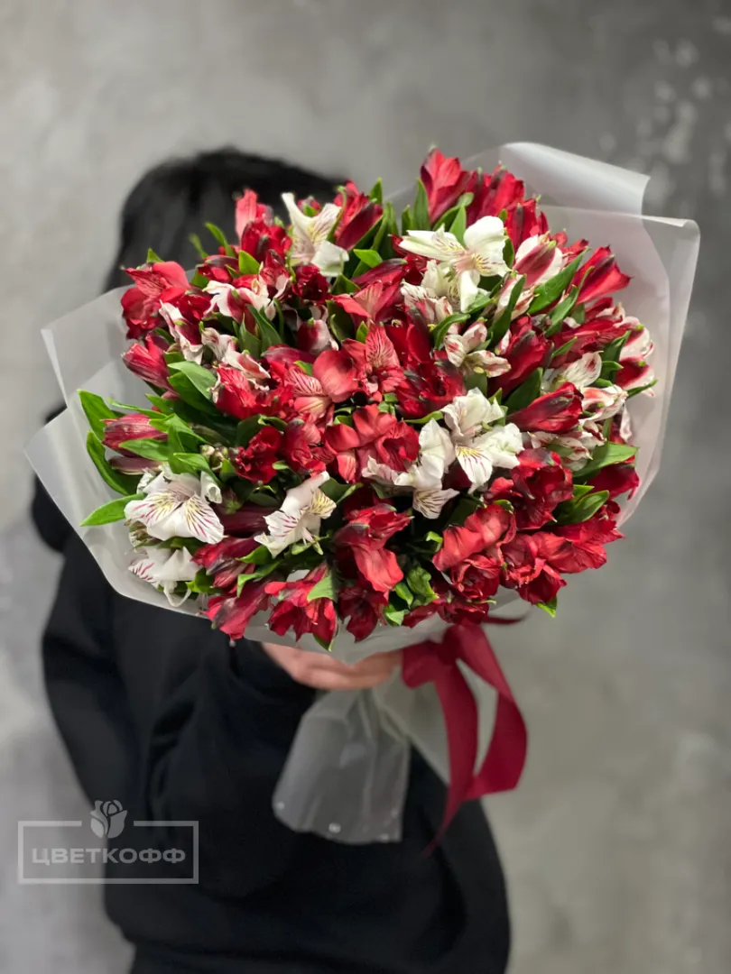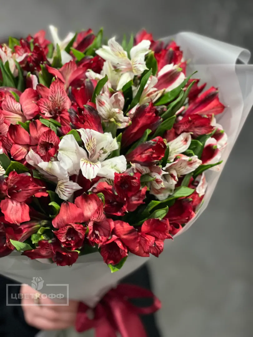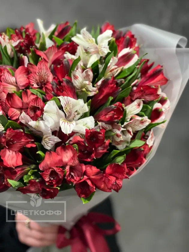 Букет из 17 альстромерий микс (красно-белый)