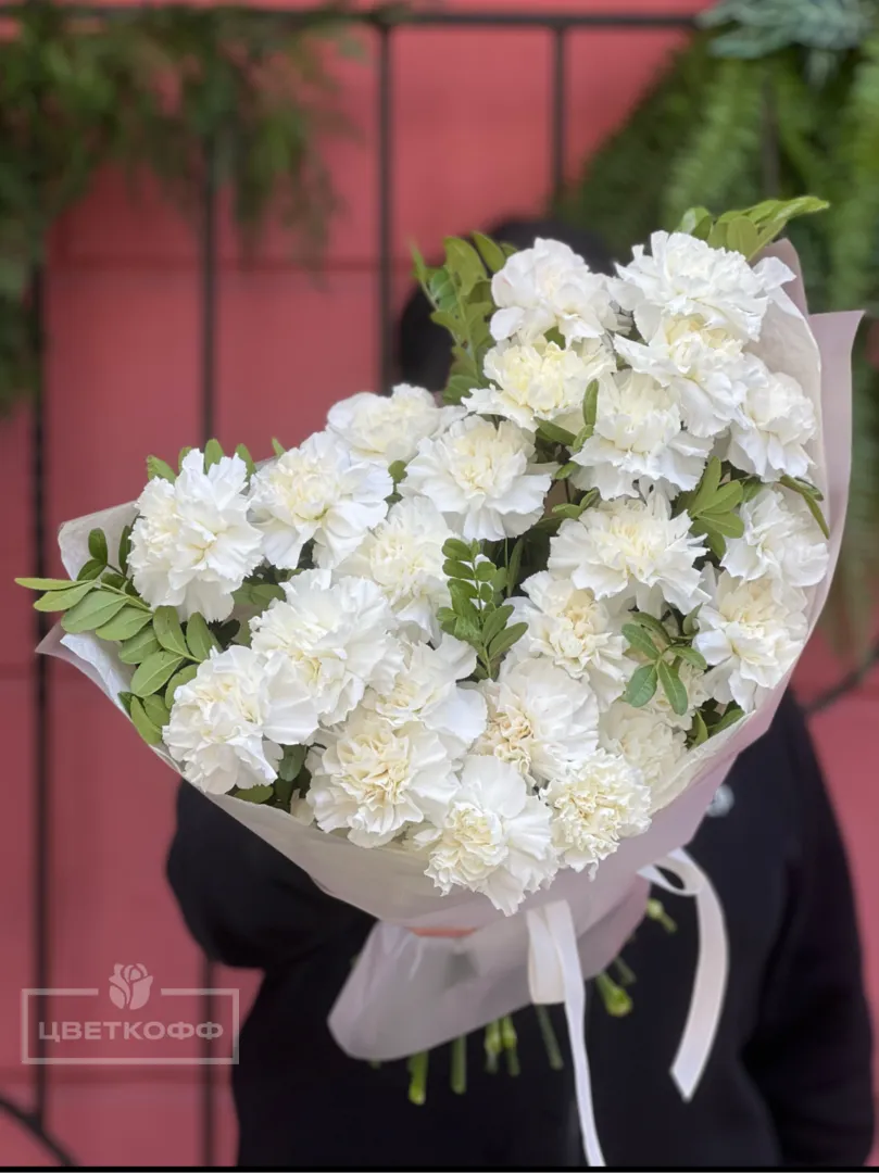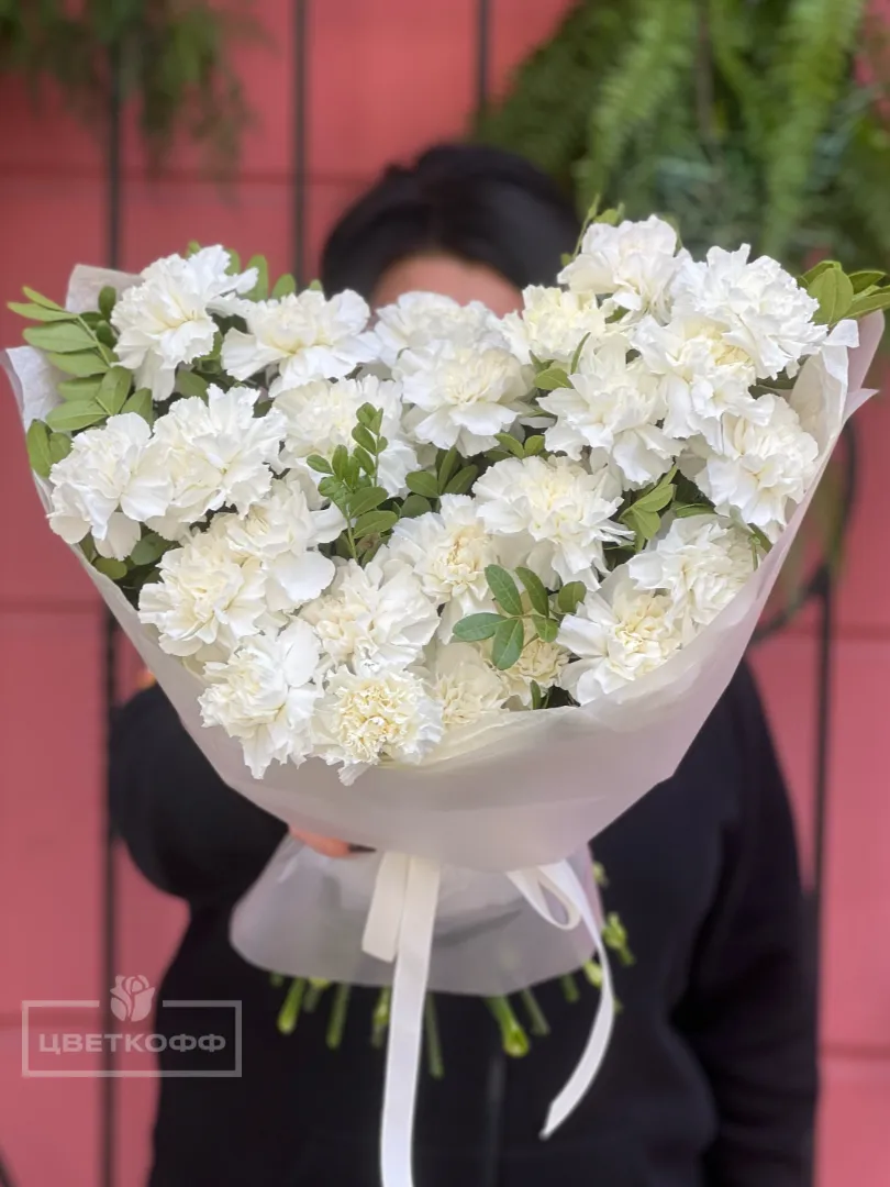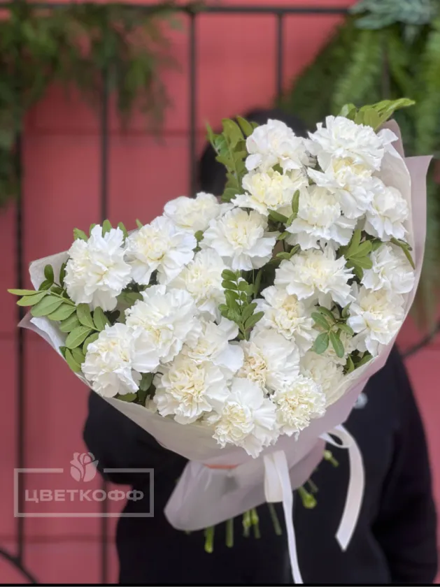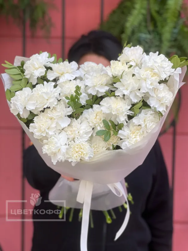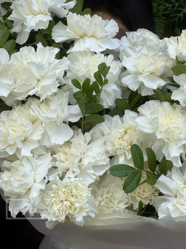 Моно букет из 25 белых диантусов