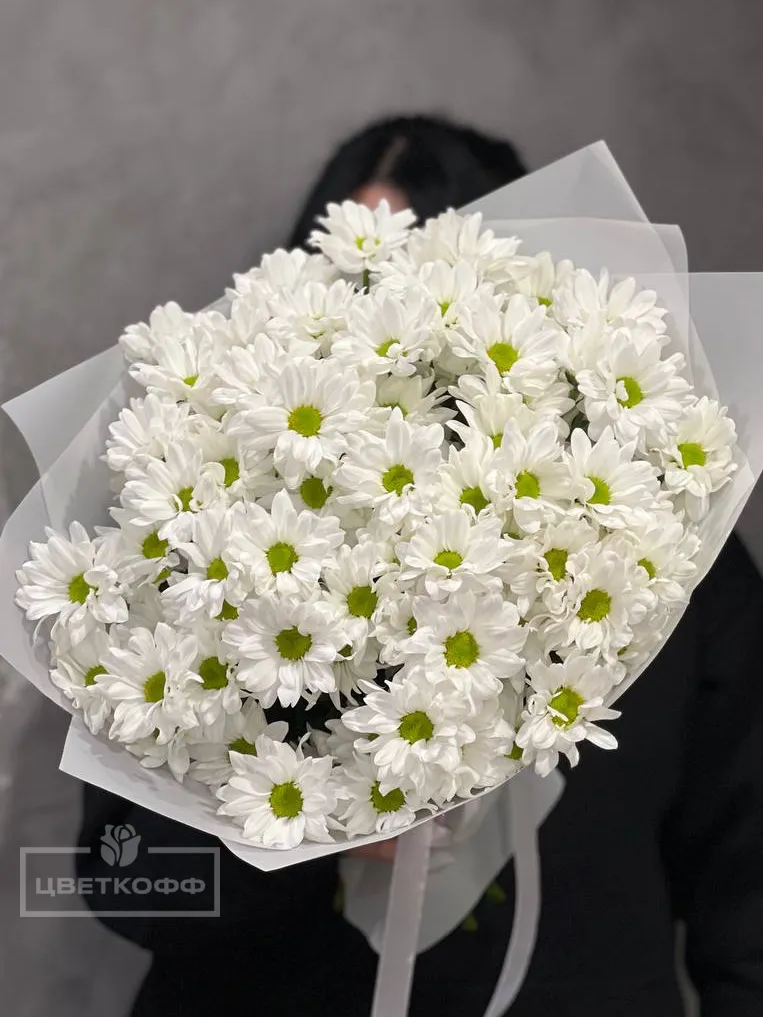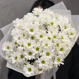 Элегантный монобукет из 11 белых хризантем станет идеальным подарком для любого повода. Каждый цветок изысканно оформлен и долго сохраняет свежесть, радуя глаз и сердце. Этот букет подчеркнет вашу искреннюю заботу и нежность.