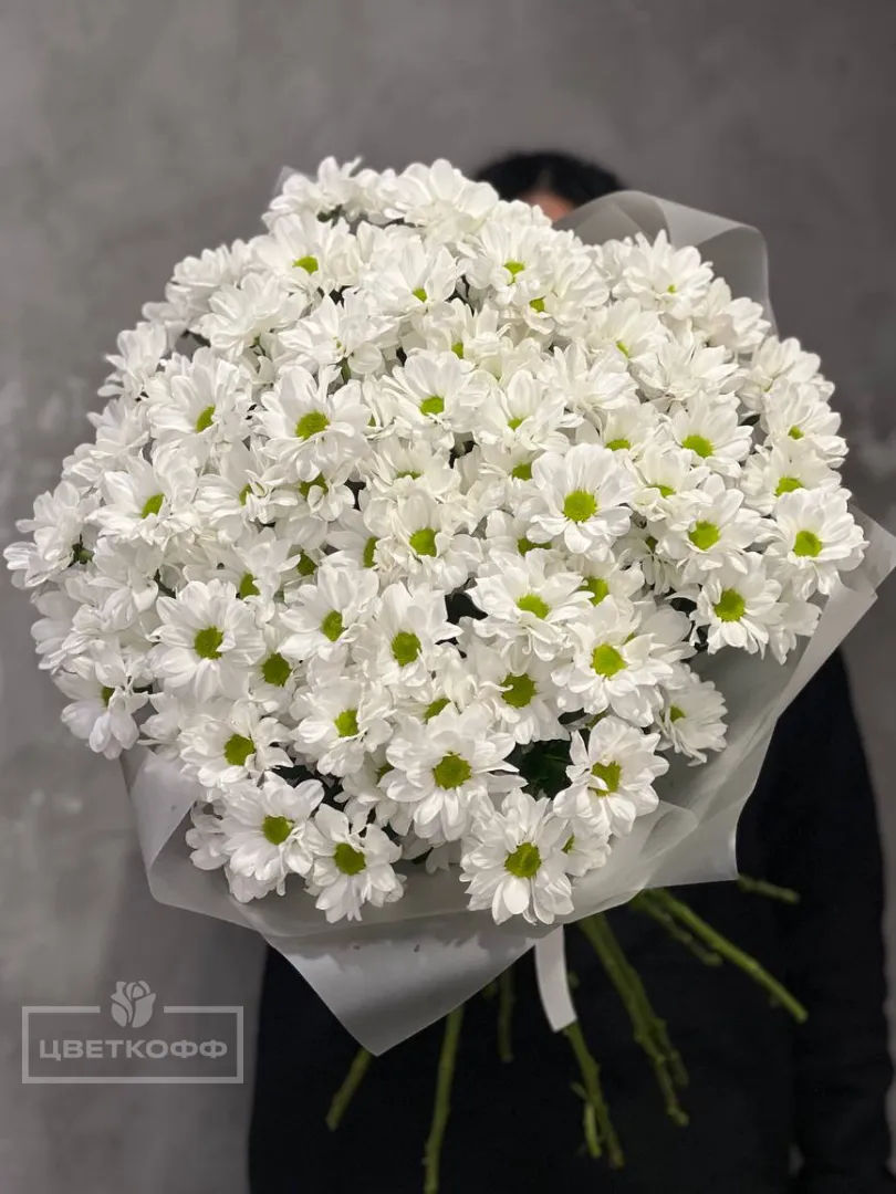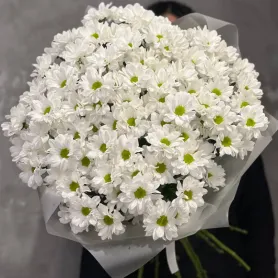 Монобукет из 15 белых хризантем