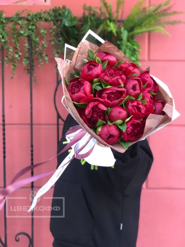 Букет из 15 бордовых пионов