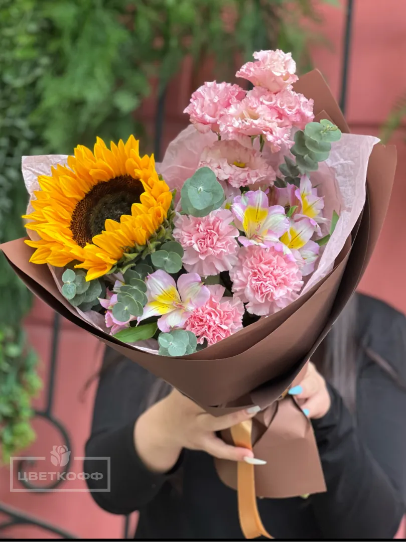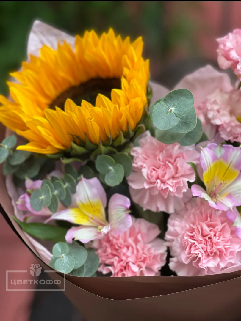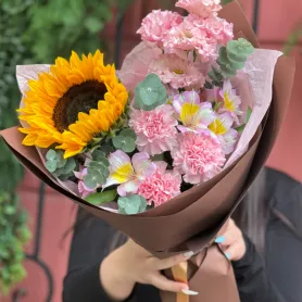 Сборный букет с подсолнухом №9