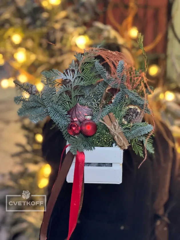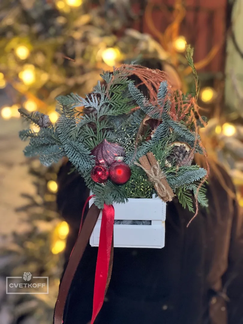 Новогодняя композиция в ящике№1