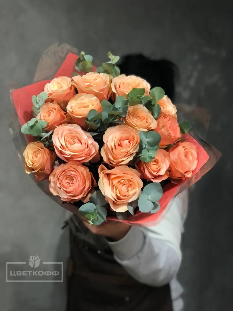 15 эквадорских роз с эвкалиптом