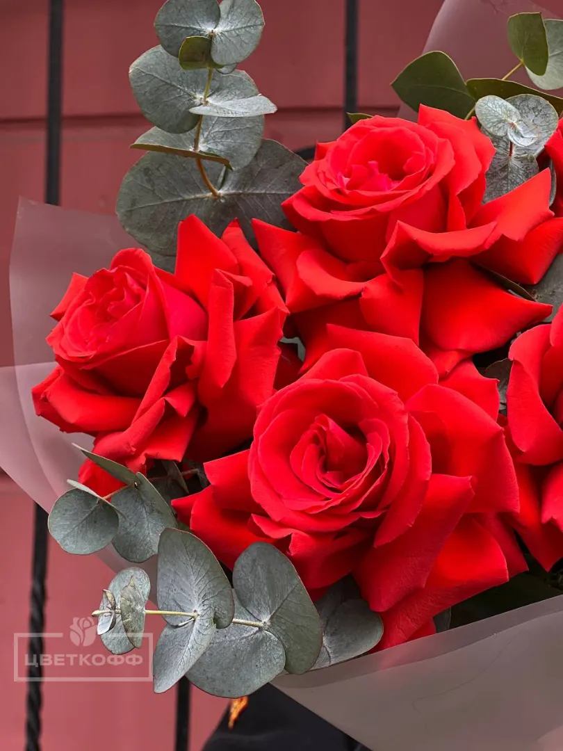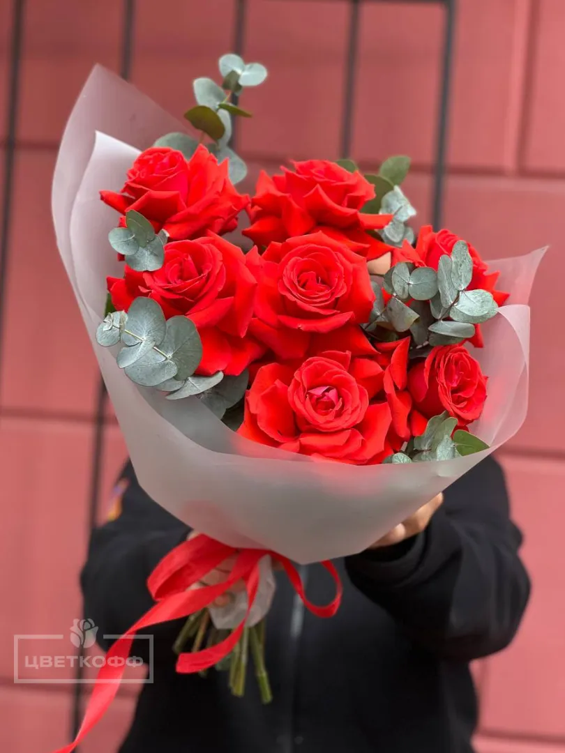 Моно букет из 7 французских роз с эвкалиптом