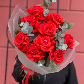Моно букет из 9 красных французских роз
