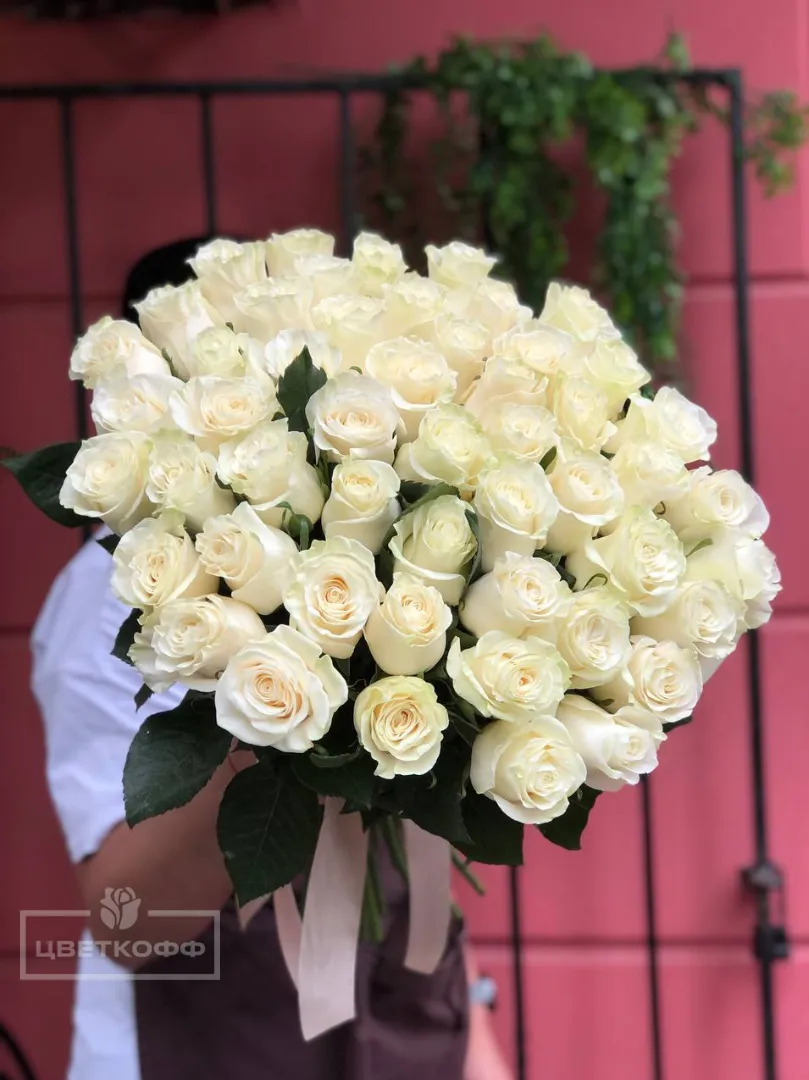 Букет из 51 белой розы «Мондиаль»