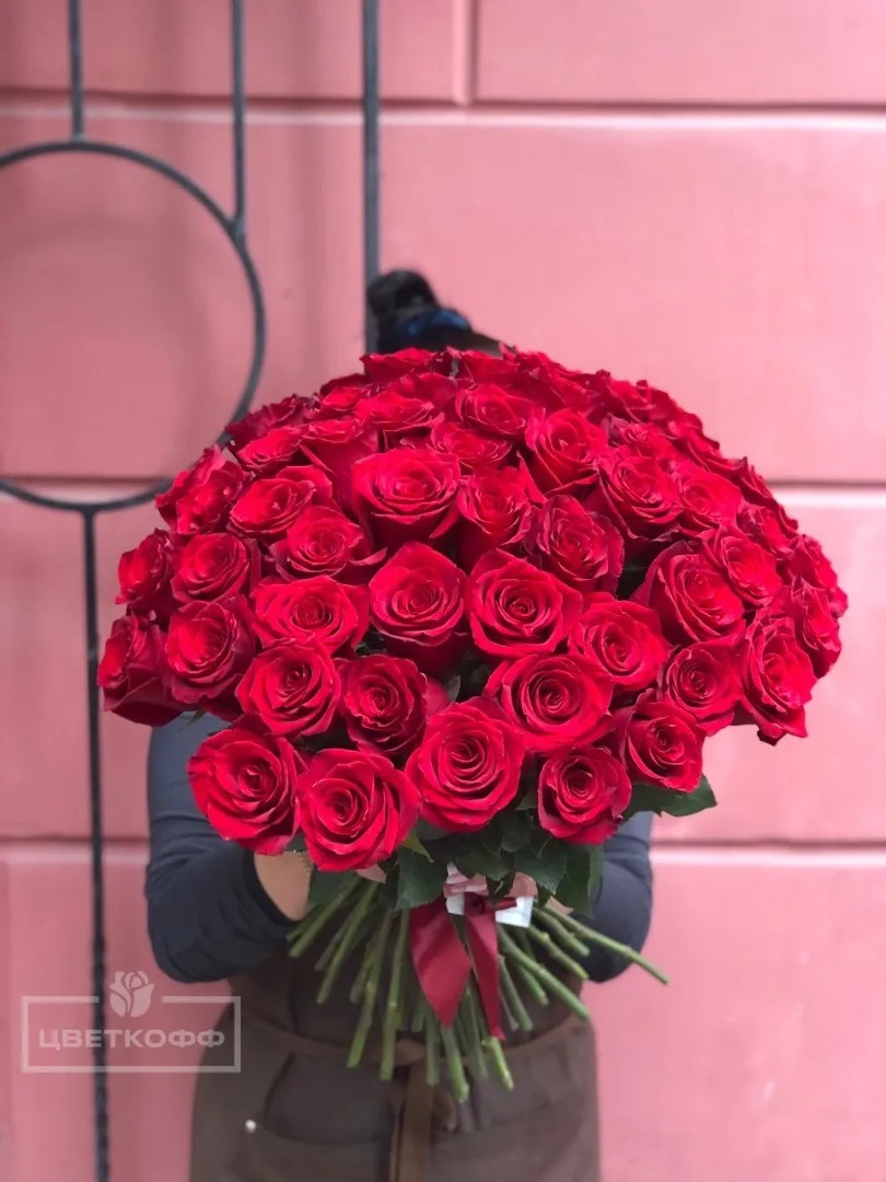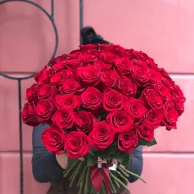 51 красная эквадорская роза под ленту