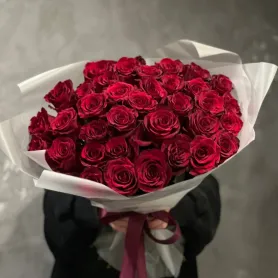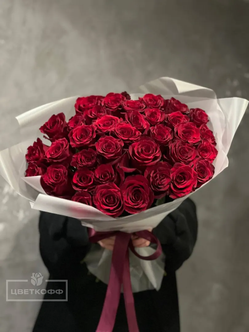 Букет из 35 красных роз в матовой пленке